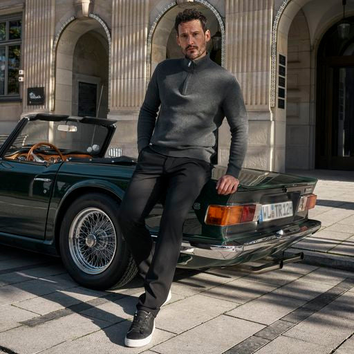 CLUB OF COMFORT® attache une grande importance à la qualité et à la durabilité de ses produits. La stratégie de design suit la maxime de développer des pantalons qui ont une valeur reconnaissable, qui sont adaptés au maximum à la vie quotidienne et qui ont une longue durée de vie à la mode. En effet, un design intemporel et une qualité de produit élevée sont des aspects qui favorisent une durée d'utilisation nettement plus longue des vêtements, contrairement aux cycles de vie courts des produits de la fast fashion à la mode. En outre, un assortiment complet de tailles ainsi qu'un large choix d'articles, de couleurs et de modèles sont des caractéristiques évidentes de l'offre d'un spécialiste du pantalon.