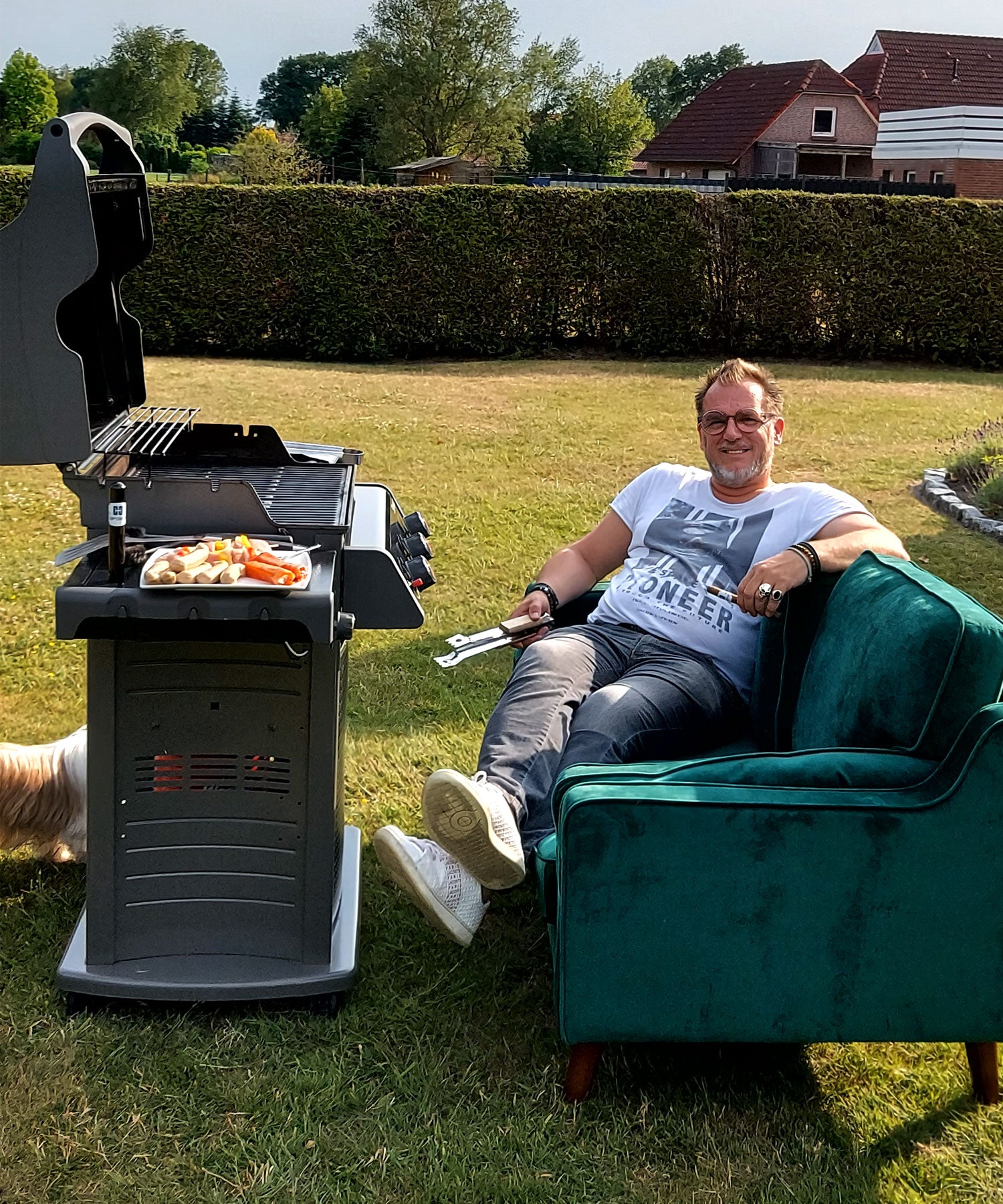 Unser bekannter "TV-Star" Norbert Bents, welchen Du mit Sicherheit von QVC kennst, trägt hier die Henry 6516, während er sich auf das anstehende Grillfest vorbereitet.