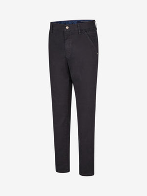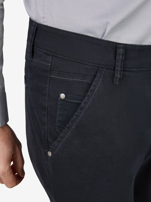 Bequeme Chino in Slim Fit mit elastischem Comfortbund und Hemdstopper. Die Münztasche bringt einen Hauch Sportivität in den Look. Gefertigt aus einer hochelastischen High Stretch-Baumwolle mit wunderschönem Warenbild und maskulinem Griff. Gewicht: 400 g/lfm Das Modell bietet eine normale Leibhöhe und wegen der deutlich schmaleren Fußweite einen extra schlanken Beinverlauf.