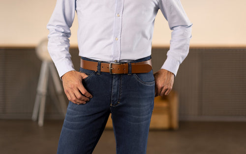 Onze hoogwaardige leren riemen hebben een slimme gesp met een rekbaar inzetstuk. Zodat de riem ook meegeeft als je beweegt in je favoriete broek. Dit is de enige manier om maximaal comfort te bieden.