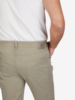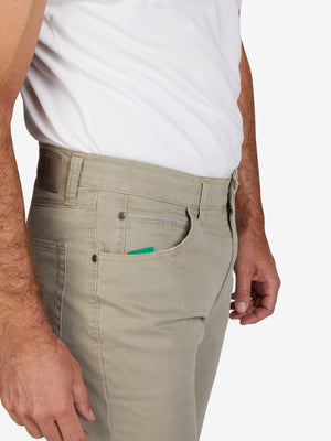 Bequeme 6-Pocket mit elastischem Doppelstoffbund und Hemdstopper. Der Clou: In der rechten Vordertasche ist eine separate "Mobile Pocket" eingearbeitet, in der man sein Smartphone kratzsicher und schnell griffbereit unterbringen kann. Gefertigt aus einer hochelastischen Baumwolle mit Diamant-Finish für einen edlen Look und soften Griff. Gewicht: 320 g/lfm Dieses Modell verfügt über eine normale Leibhöhe und ein schlankes Bein bei schmaler Fußweite