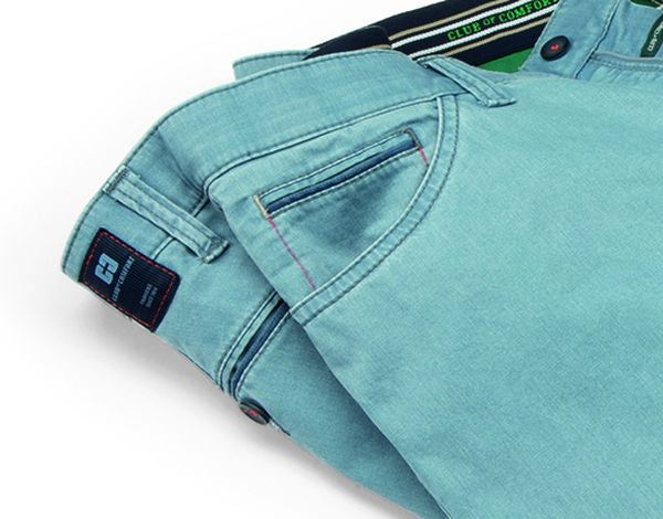 Swing-Pocket confortable avec une taille confort élastique et un arrêt de chemise. Fabriqué en denim bi-stretch super-élastique, très élastique dans le sens de la longueur et de la largeur. Grâce à un mélange de T400, le pantalon reste parfaitement indéformable malgré son extrême élasticité. Poids : 570 g/ml Le modèle a une hauteur de taille normale et une jambe fine avec une largeur de pied étroite.